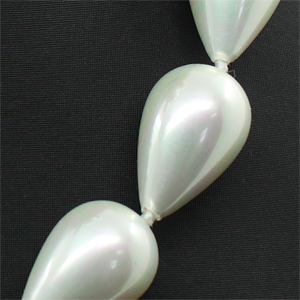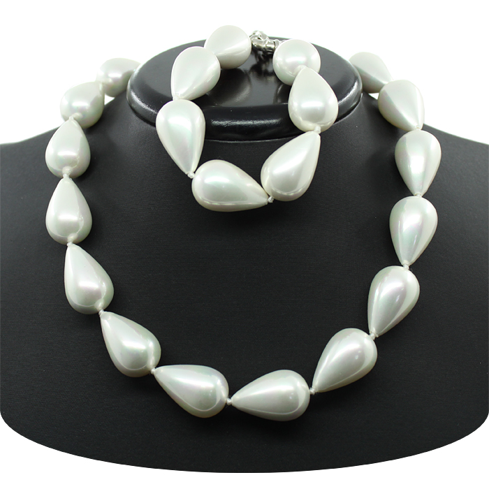 Комплект Бусы и браслет майорка белая, капли 16х25мм, короткие 45см
