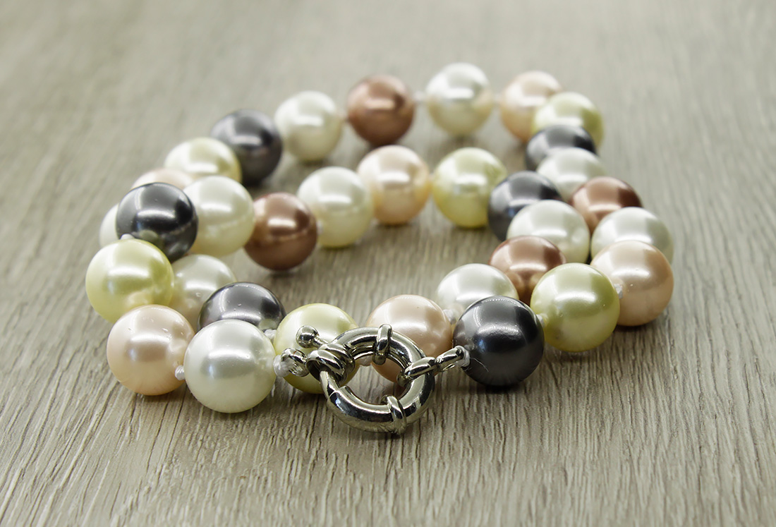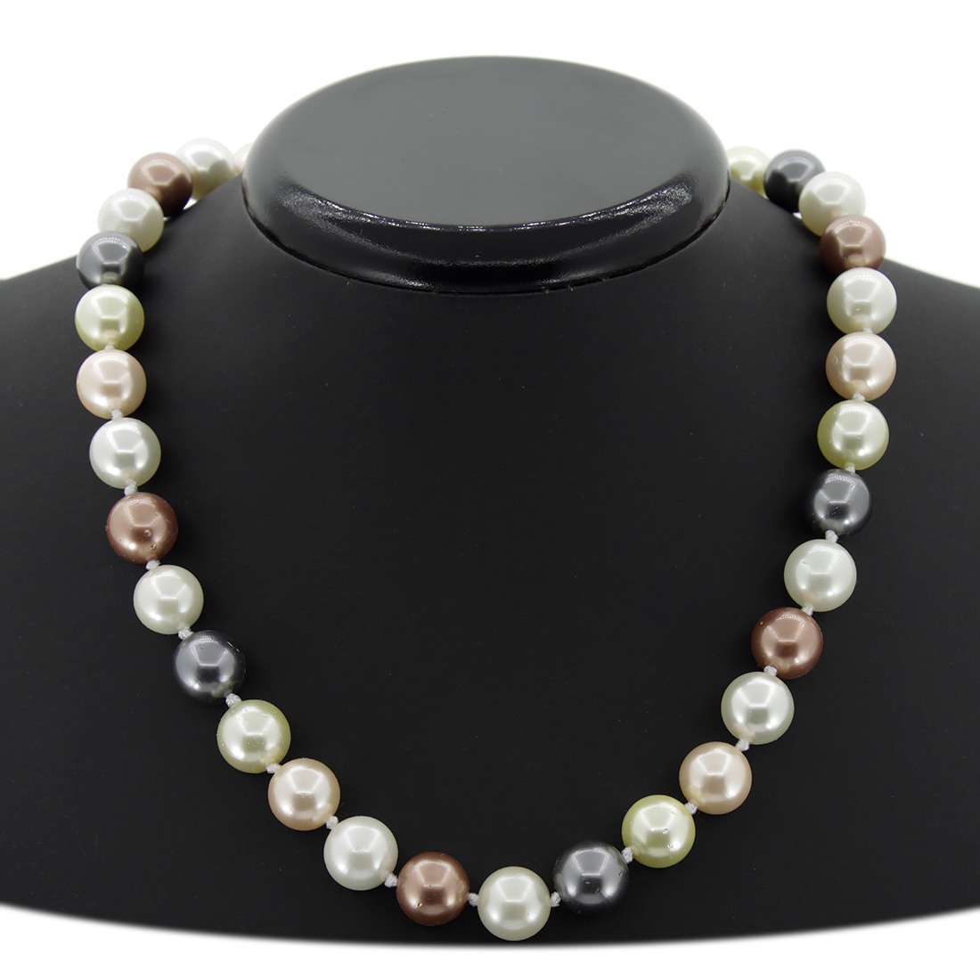 Бусы майорка mix серо-золотой, круглые 12мм, короткие 49см