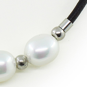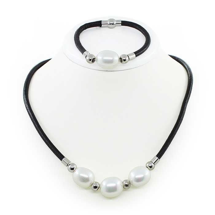 Колье и браслет майорка белая, овальные 16х20мм на кожанной веревке, короткое 50см