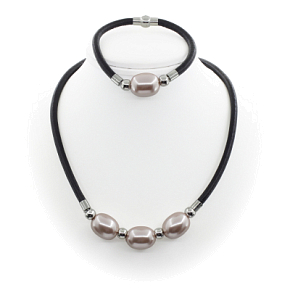Колье и браслет майорка розовая, овальные 16х20мм на кожанной веревке, короткое 50см