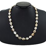 Перламутр отличается очень красивым блеском, и может быть разных цветов. Причём, в отличие от жемчуга, есть разновидности, окрашенные в разные цвета одновременно. К таким относят и гелиотис. Колье с гелиотисом представлены в этом разделе, а браслеты к ним Вы сможете подобрать в разделе браслетов. Кстати, все украшения из гелиотиса здесь.