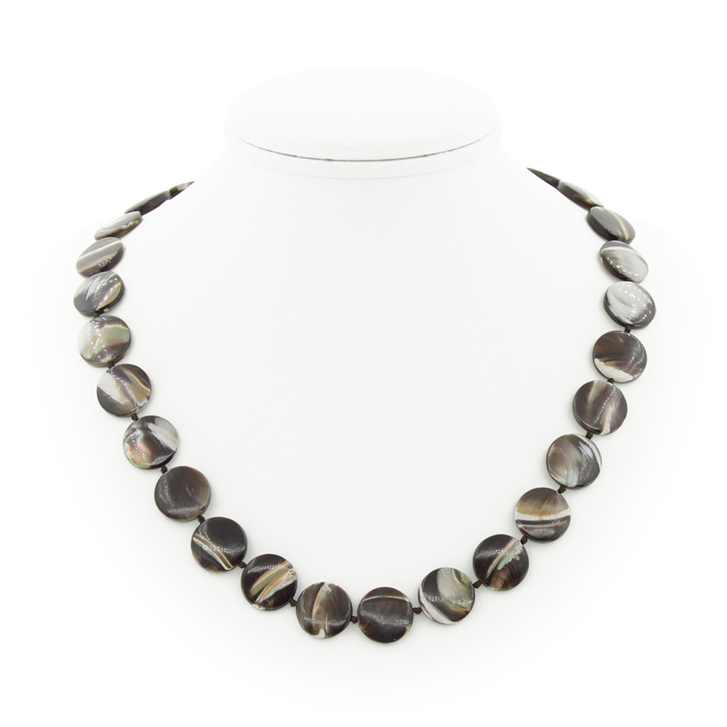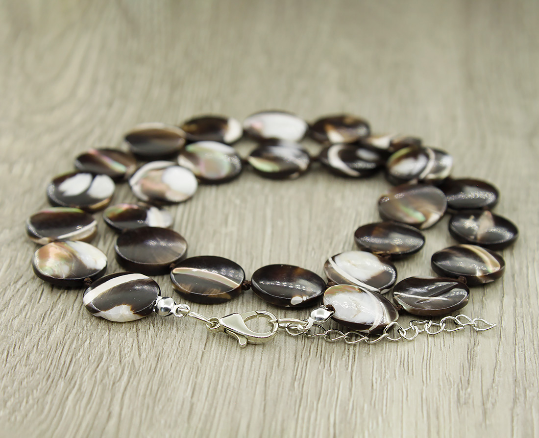 Перламутр коричневый, плоские круглые, бусы длиной 47см