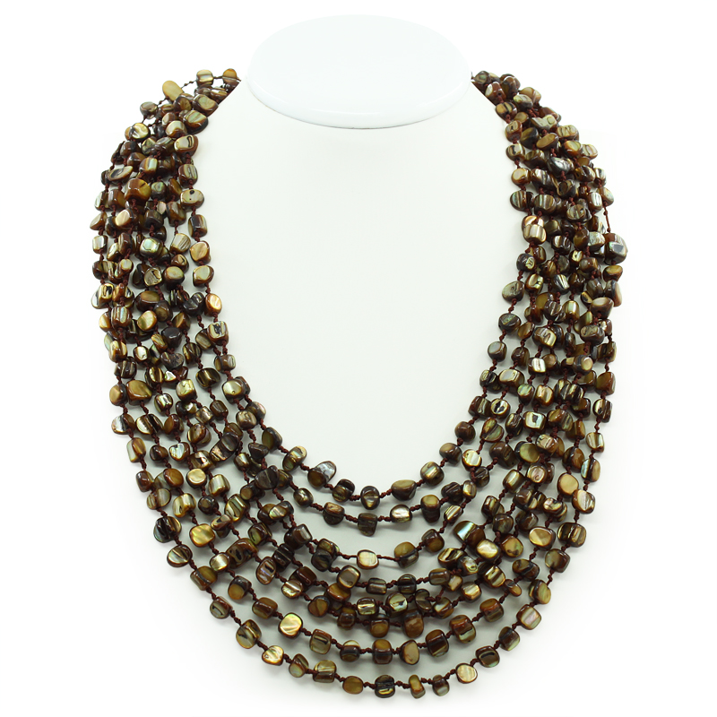 Роскошное колье "Каскад" состоит из восьми перламутровых нитей коричневого цвета.