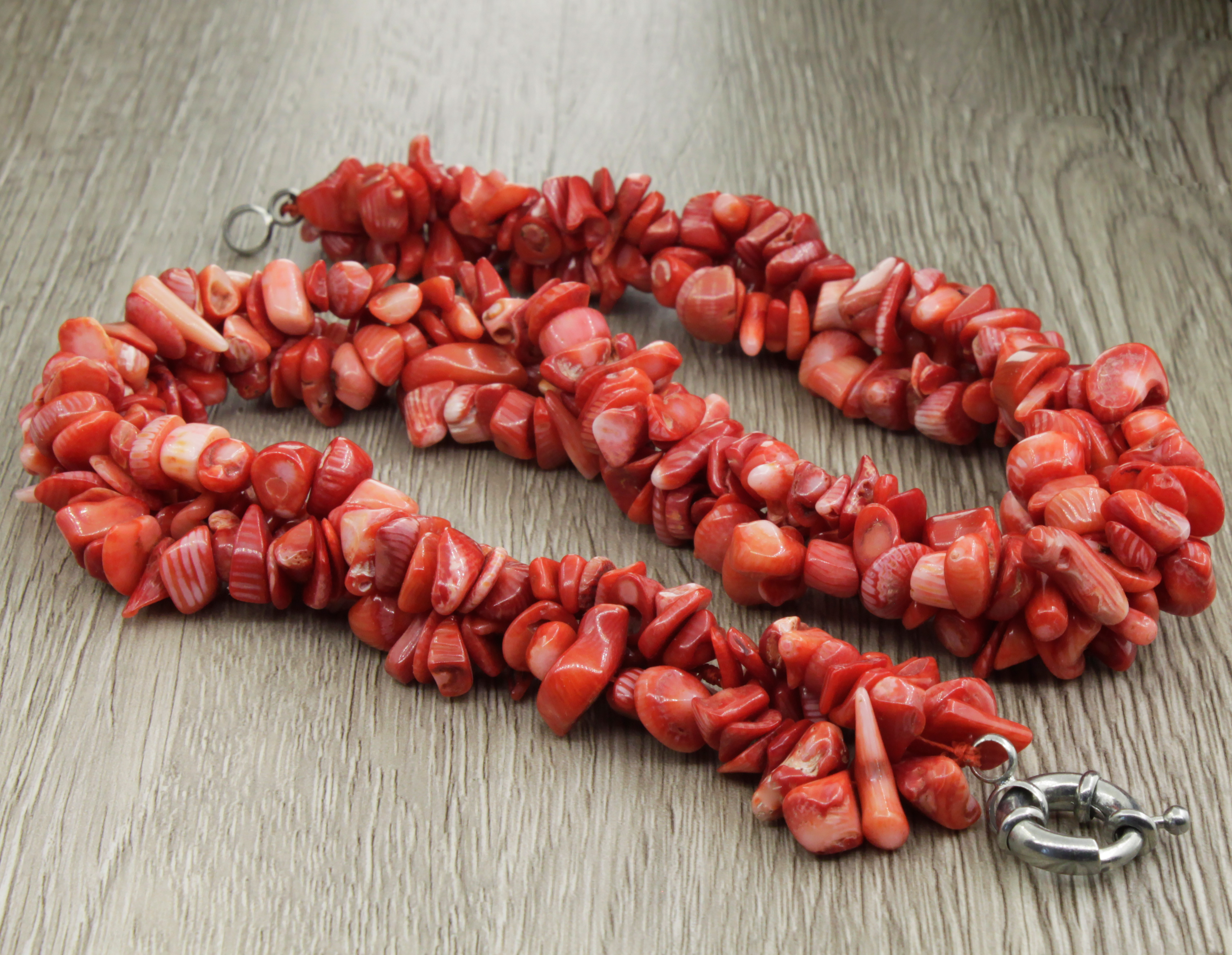Бусы коралл красный "Косичка", иголочки, короткие 45см