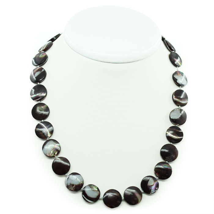 Бусы перламутр коричневый, плоские круглый 18мм, короткие 45см