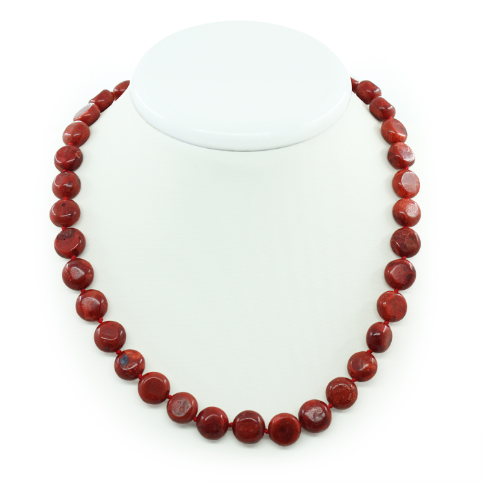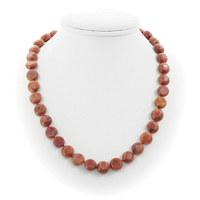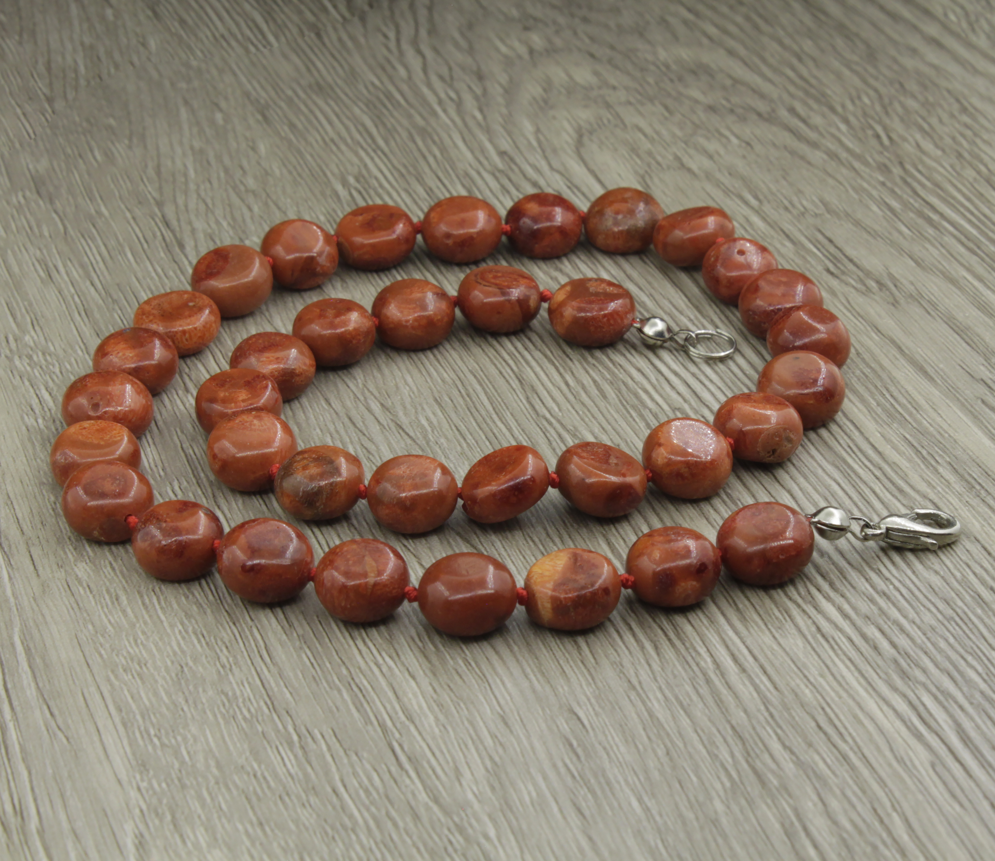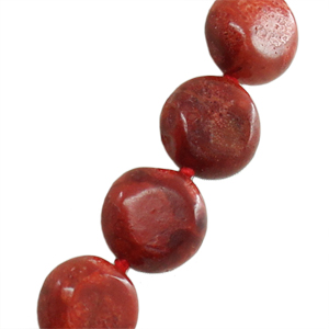 Бусы коралл губчатый обработанный, приплюснутные бусины 10мм, через узелок