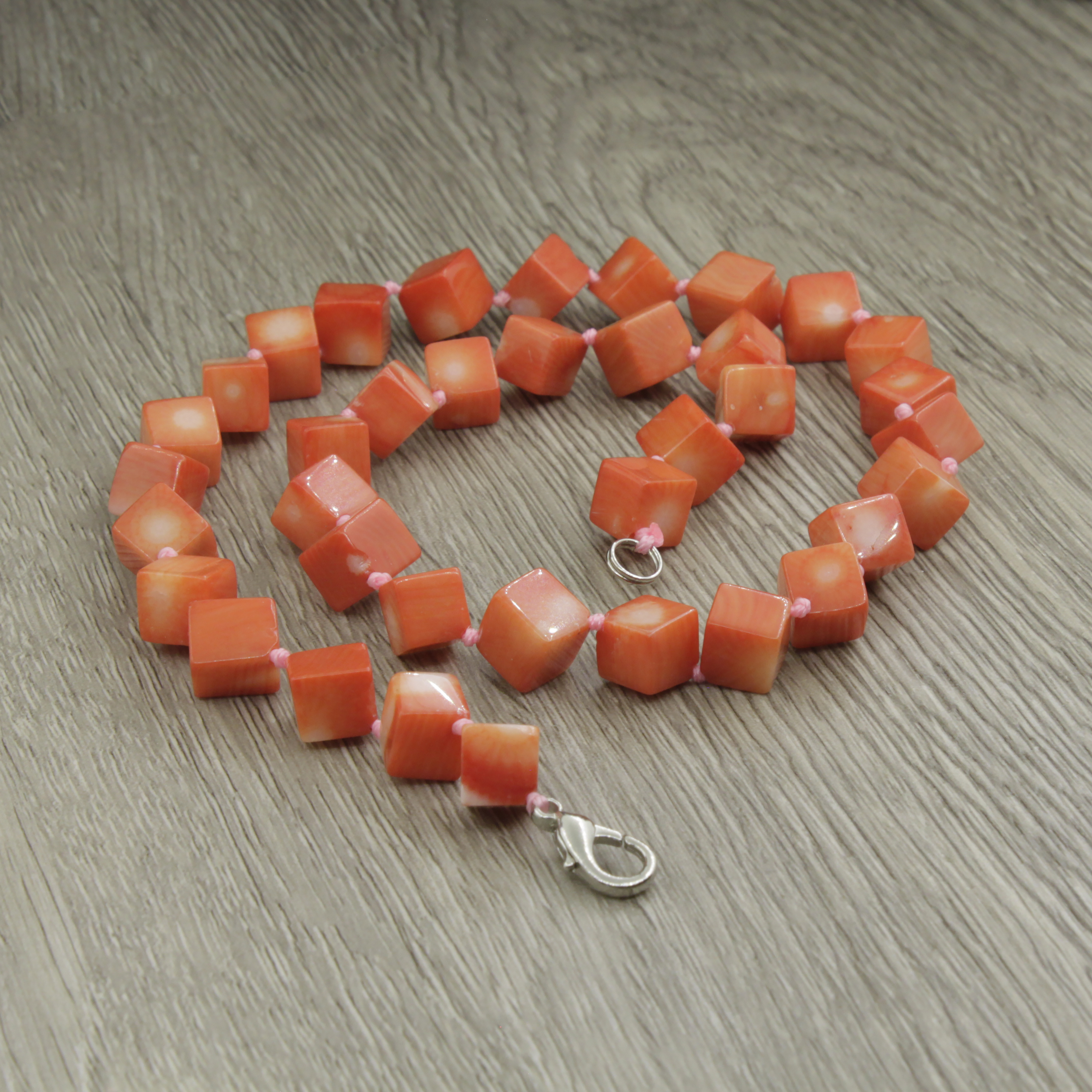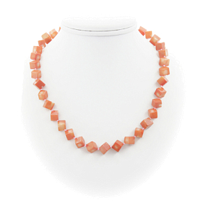 Бусы коралл красный натуральный, кубики 8...10мм, короткие 44см