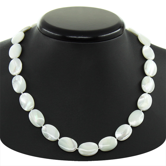 Перламутр белый (Индонезия), плоские овалы 13х18мм, бусы 44...48см