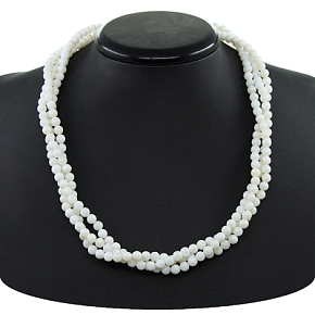 Колье выполнено из натурального белого перламутра. Диаметр шариков 6мм. Длина колье 55см.