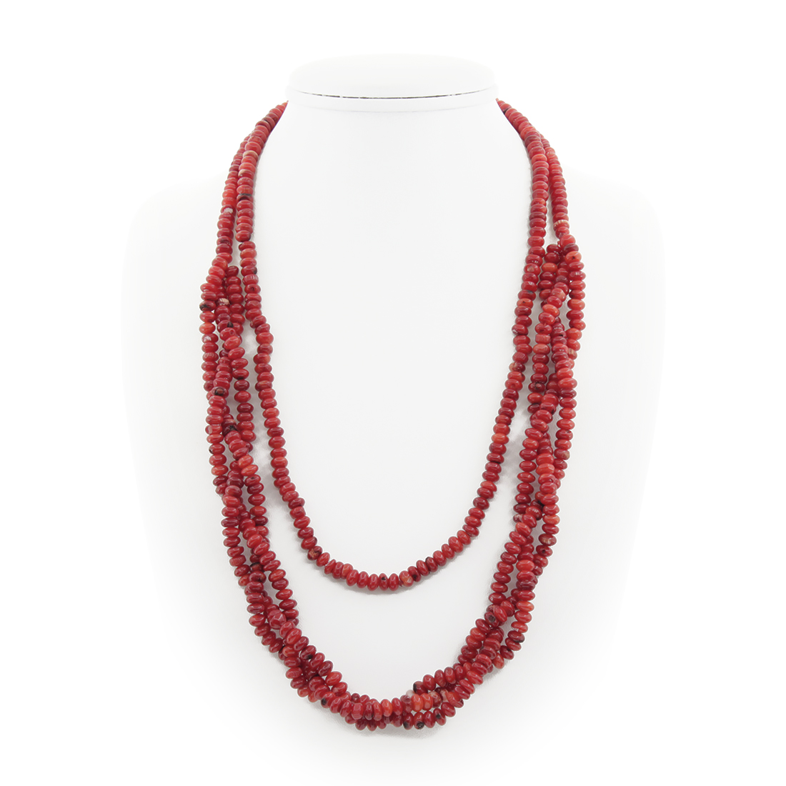 Коралл красный натуральный, "Плетение", кукуруза 6х4мм, бусы 118см