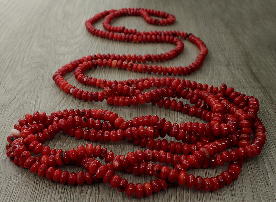 Длинные бусы из натурального красного коралла привлекают своими элементами плетения и станут яркой деталью Вашего образа. Украшение на нити, можно носить в два яруса. Длина бус: 118см. Размер бусины: 6х4мм. Осторожно! Натуральный коралл может красить!