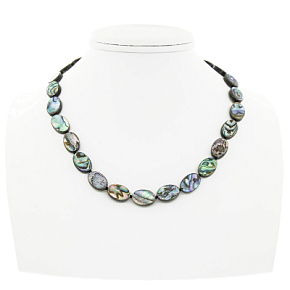 Бусы выполнены из натурального гелиотиса. Размер 13х18мм. Длина 48-53см, регулируется с помощью удлинняющей цепочки.