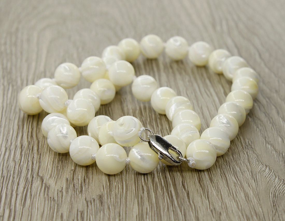 Перламутр белый (Индонезия), круглые бусинки 10мм, бусы 50см