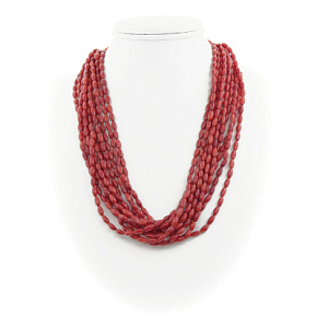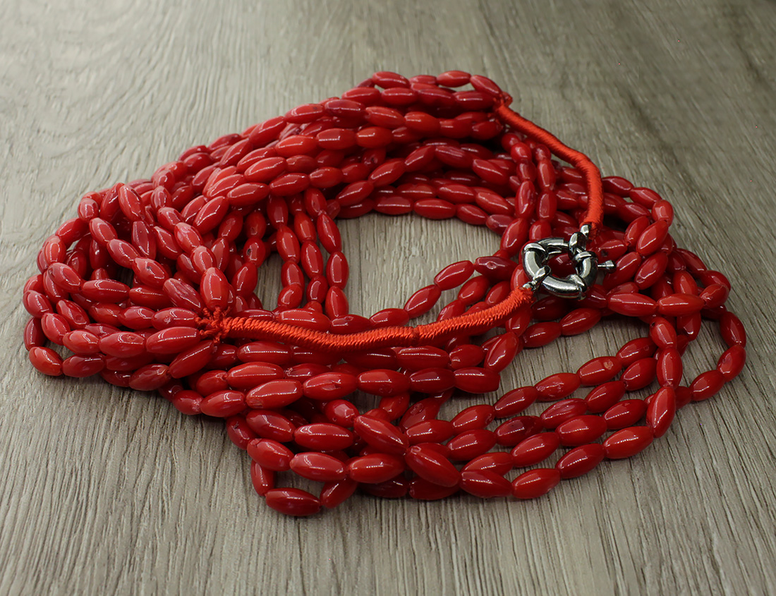 Колье коралл красный натуральный "Касабланка", зерно 4х8мм 10 нитей, короткое 50см