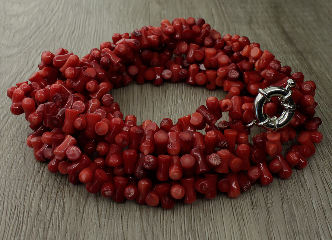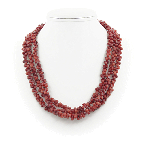 Коралл красный натуральный, косточки 4х8мм, колье 3х-ярусное, 50см