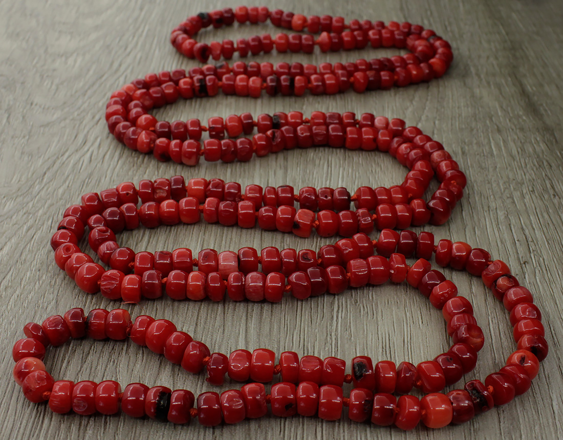 Коралл красный, кукуруза 5х4мм, бусы 120см