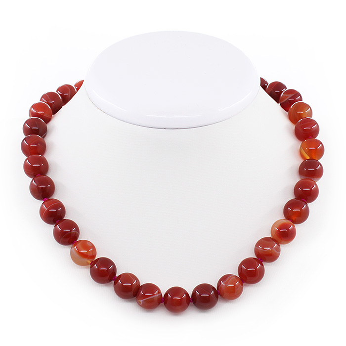 Бусы из натурального сердолика. Длина украшения 44см+ цепочка, размер бусин 12мм.