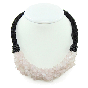 Бусы кварц розовый "Амазонка", галька, короткие 47см