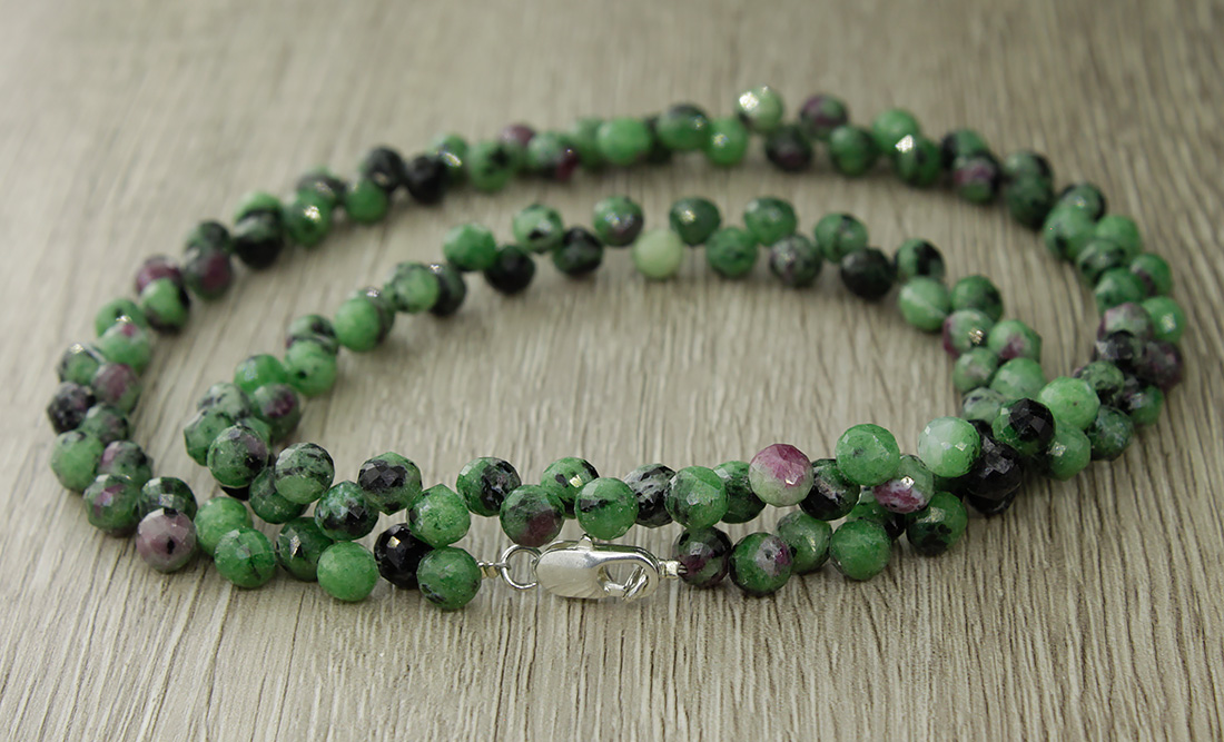 Классическая "бриллиантовая" огранка бусин натурального циозита (месторождение Танзания) в форме капель придаёт им живой блеск и игру оттенков. Бусы собраны индийскими мастерами. Длина бус 49см, размер бусин - около 5.5мм.