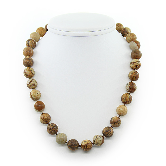 Бусы яшма древесная, круглые 12мм, короткие 49см