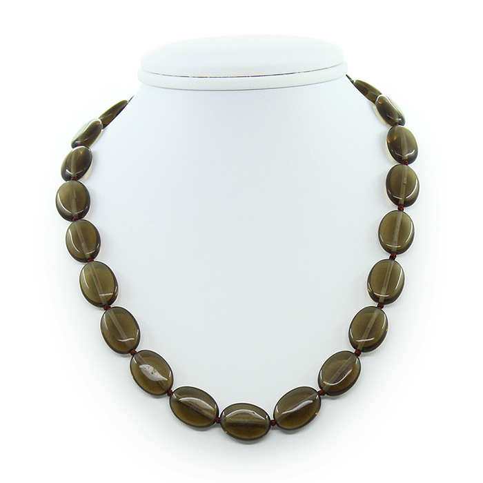 Бусы раухтопаз имитация, плоские овальные 13х18мм, короткие 45см