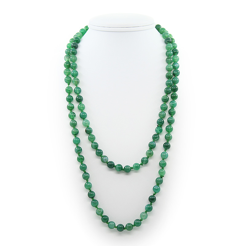 Бусы из натурального зеленого агата. Длина бус позволяет обернуть их вокруг шеи два раза или завязать узлом. Диаметр бусин 8мм, длина изделия 116см.