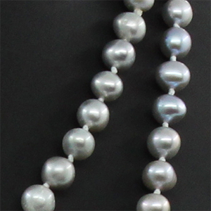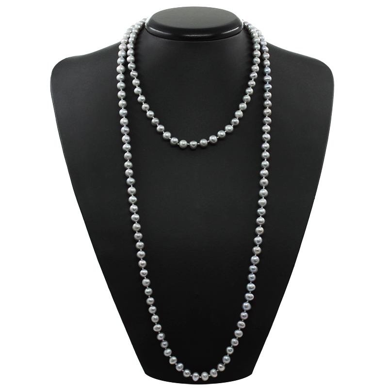 Длинные бусы из натурального серого жемчуга. Длина бус позволяет обернуть их вокруг шеи два раза или завязать узлом. Диаметр жемчужин 6мм, длина изделия 120см.