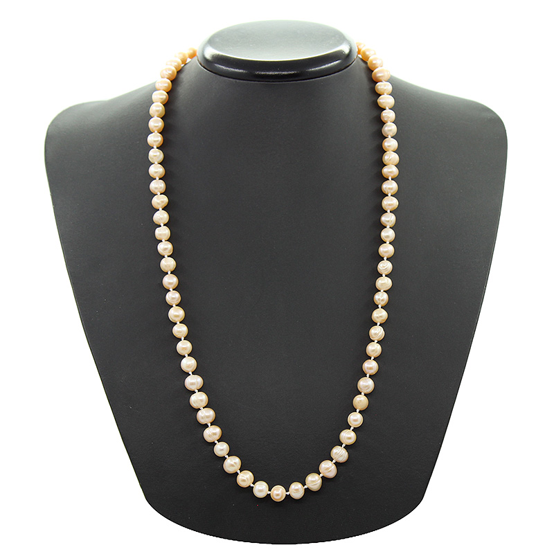 Бусы розовый жемчуг, неровный овальный 7мм, средние 63см