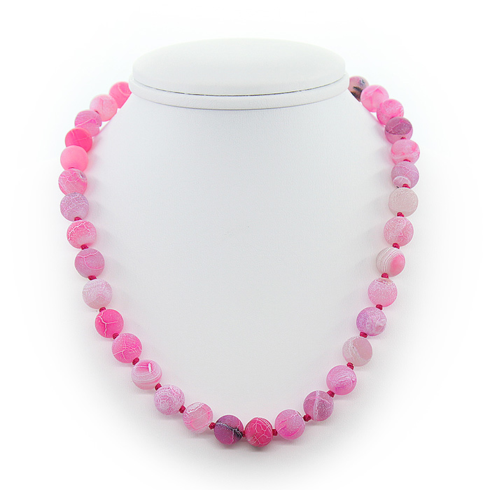 Бусы агат африканский розовый матовый, круглые 10мм, короткие 45см