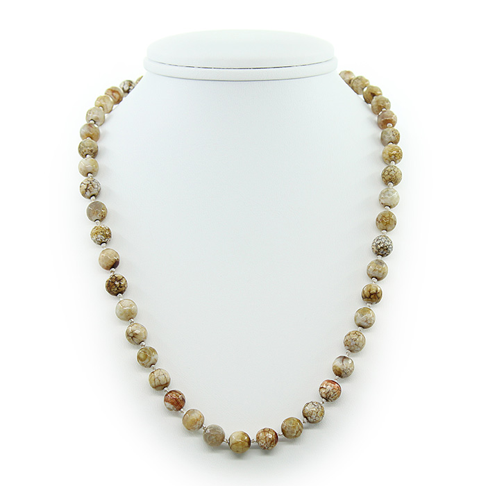 Бусы агат африканский бежевый, круглые граненые 8мм, короткие 45см