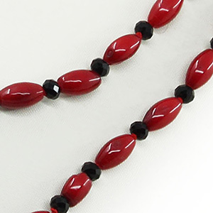 Бусы коралл красный натуральный "Астра" с гранеными вставками, зерно 4х7мм, длинные 110см
