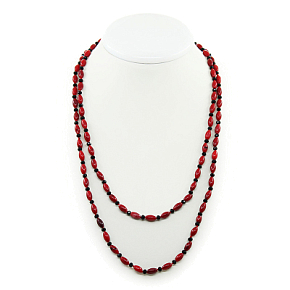 Роскошные бусы из натурального красного коралла, разбавленные гранеными вставками из чешского стекла черного цвета. Длина бус позволяет обернуть их вокруг шеи два раза или завязать узлом. Размер бусин из коралла 4х7мммм. Длина 110см.