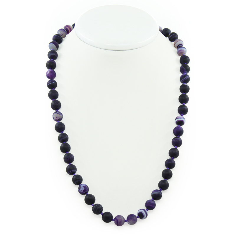 Необычные бусы фиолетового цвета из натурального агата. Матовая огранка камней в этом изделии весьма необычна, и придает дополнительный шарм украшению Длина изделия 60см. Размер бусин 10мм.