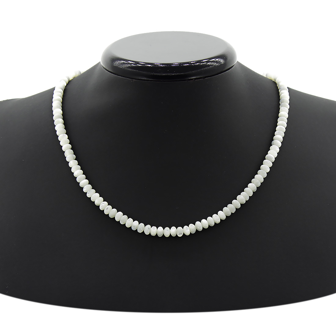 Перламутр белый 6мм, круглые приплюснутые бусины, бусы длиной 47см