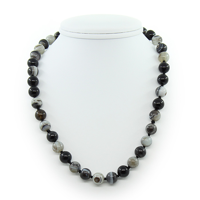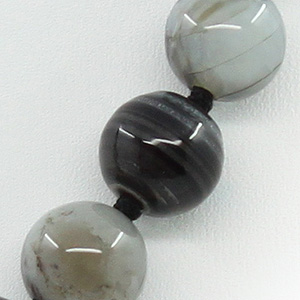 Бусы агат черный и серый полосатый, круглые 10мм, короткие 45см