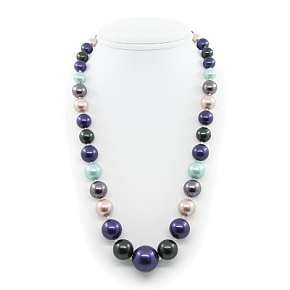 Бусы майорка сине-розовая, разноразмерные 8...20мм, короткие 50см