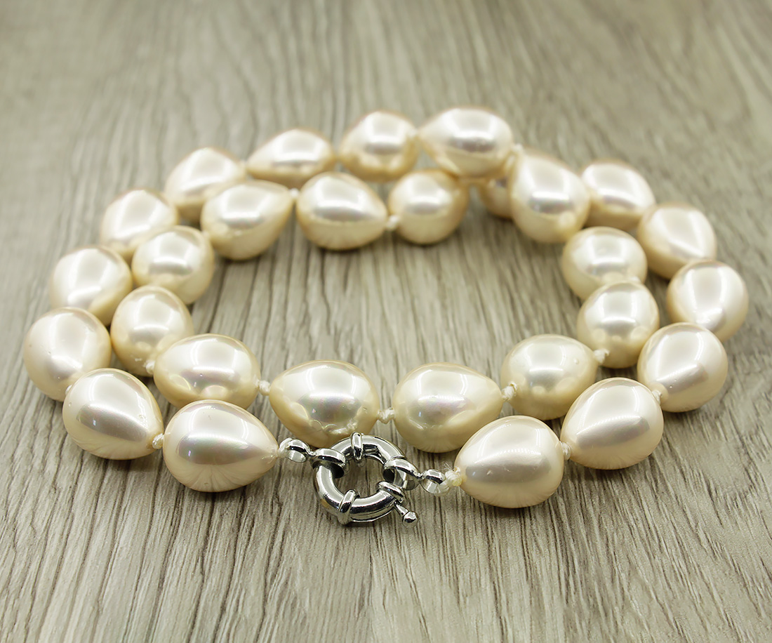 Майорка бежевая, бусины в форме капли 12x15мм, бусы длиной 50см