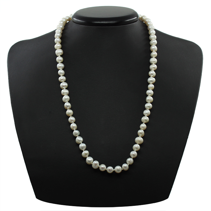 Жемчужная нить из белого жемчуга. Диаметр бусин 7-8мм, длина бус 60см.