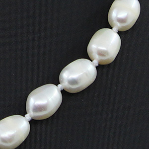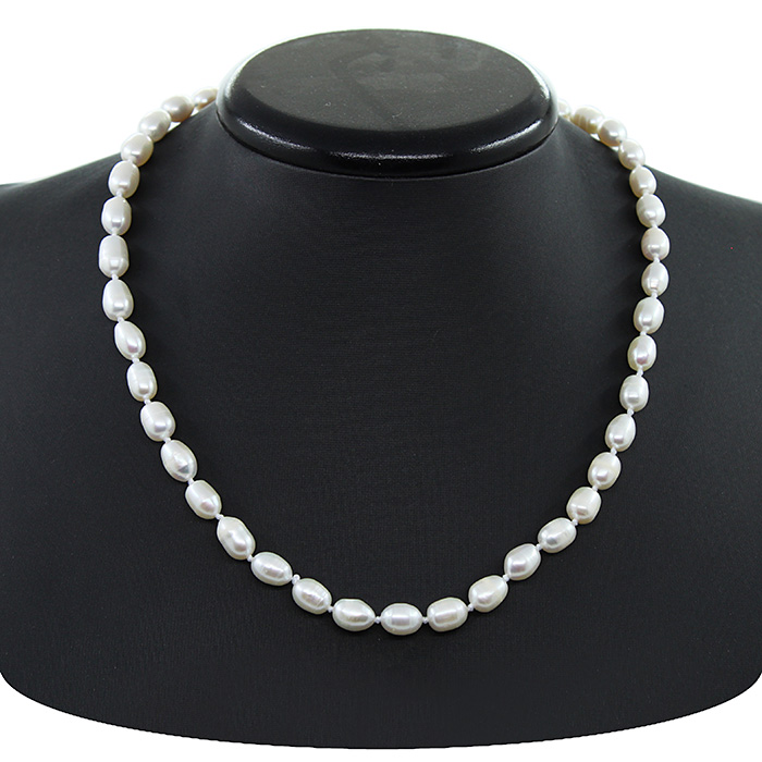 Бусы жемчуг белый, овальные 7х9мм, короткие 47см