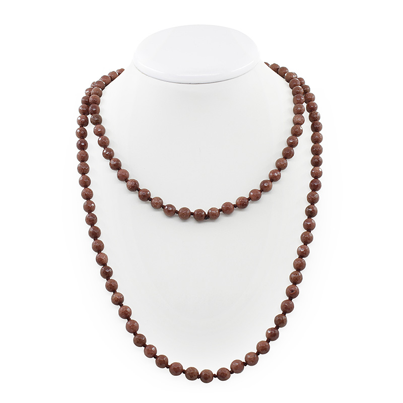 Длинные бусы из коричневого авантюрина (имитация) "Милиса" с круглыми гранеными бусинами размером 8мм. Длина бус 115см