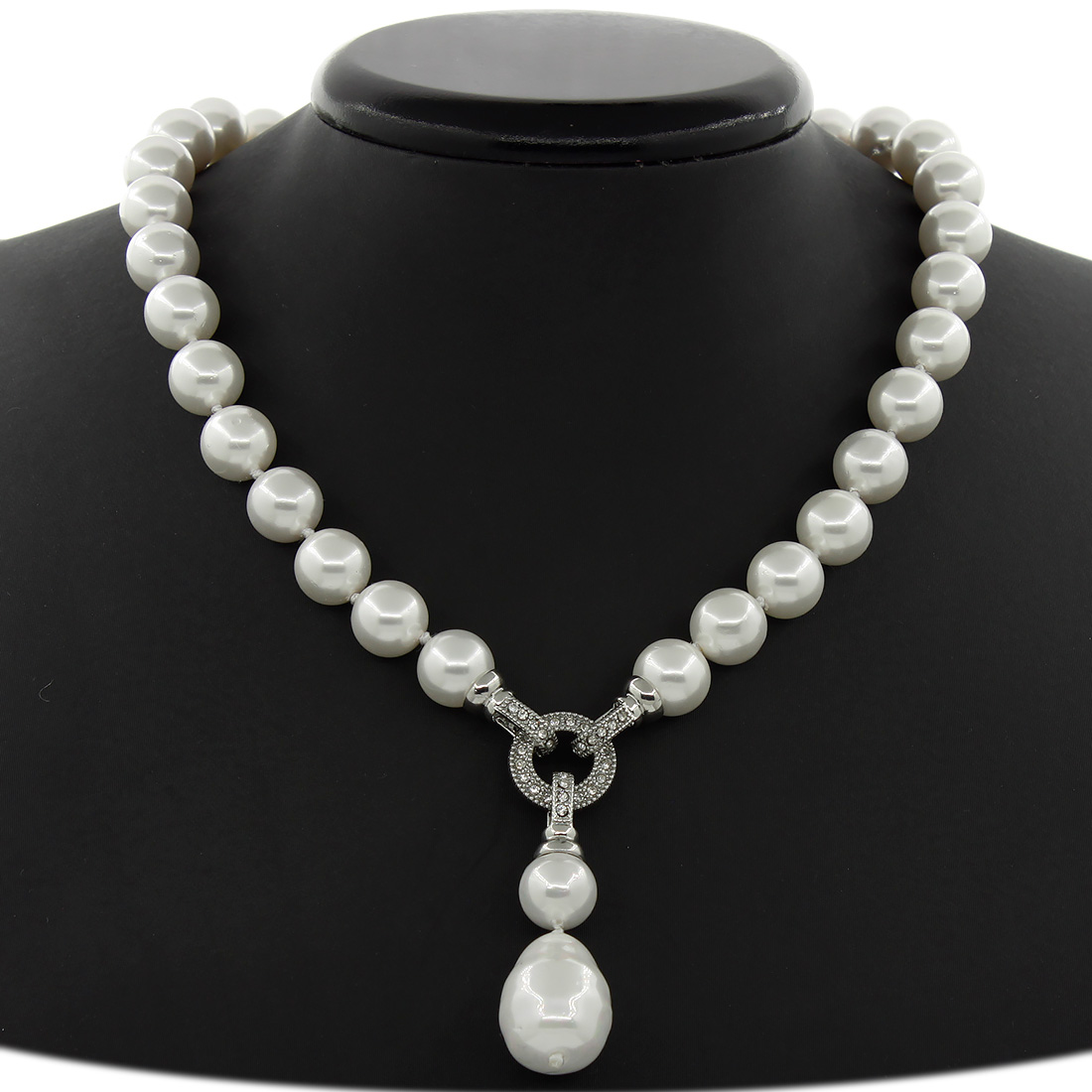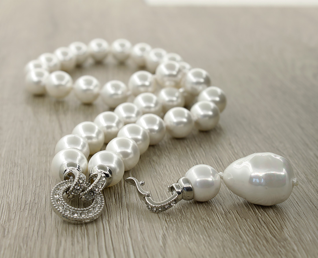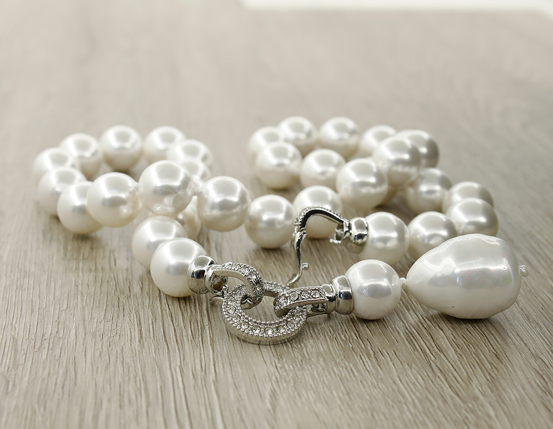 Колье с кулоном майорка белая "Деметра", бусины 12мм, длина 47см