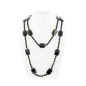 Агат черный (Бразилия), плоские прямоугольные бусины 18x25мм, бусы "Гармония" длиной 138см