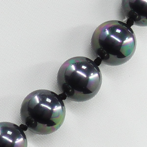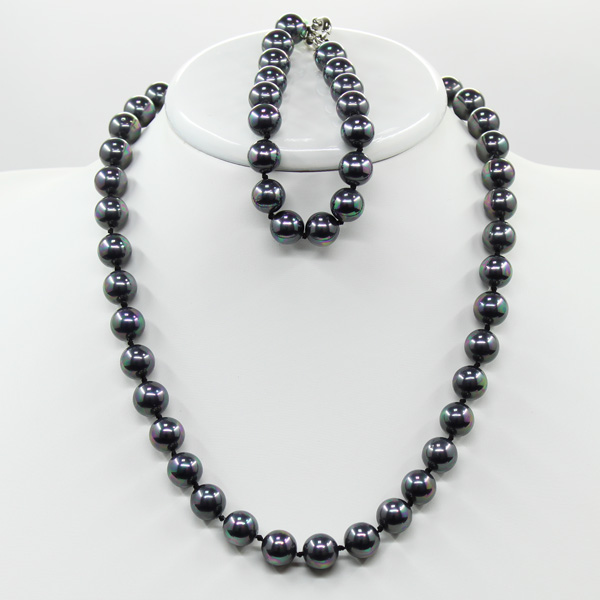 Комплект Бусы и браслет майорка черная, круглая 10мм, короткие 45см