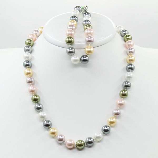 Комплект Бусы и браслет майорка mix серо-золотой, круглая 10мм, короткие 45см