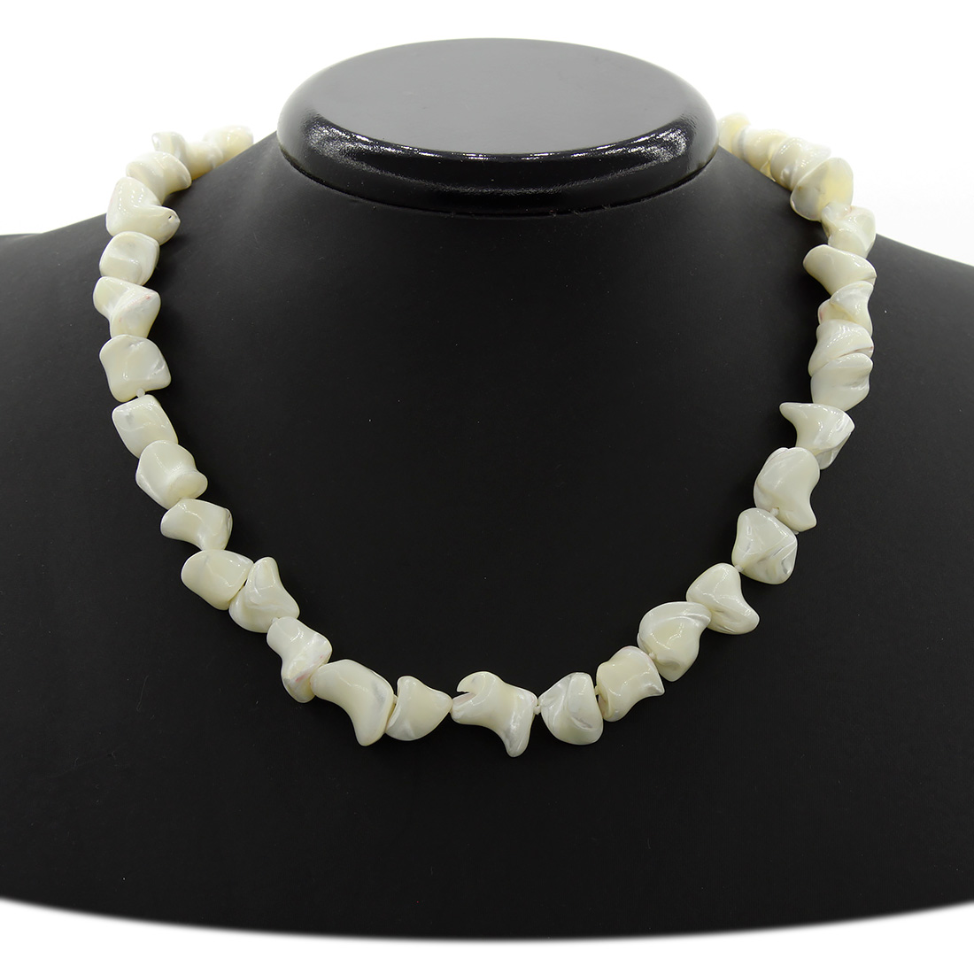 Бусы перламутр белый, комочки, короткие 45см