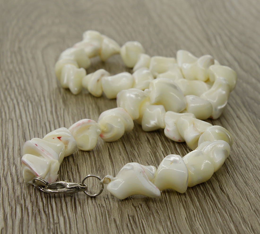Изделие из мятых комочков перламутра белого цвета. Диаметр бусин примерно 10мм, длина бус 45см.