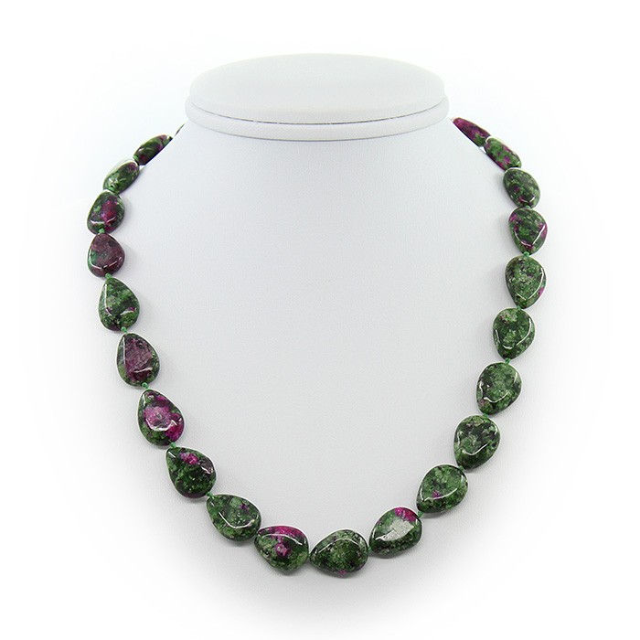Бусы из натурального циозита (цоизита) в форме капли размером 13х17мм. Длина бус 45см.