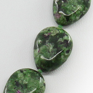 Бусы из циозита (цоизита), плоские капли 13х17мм, короткие 45см