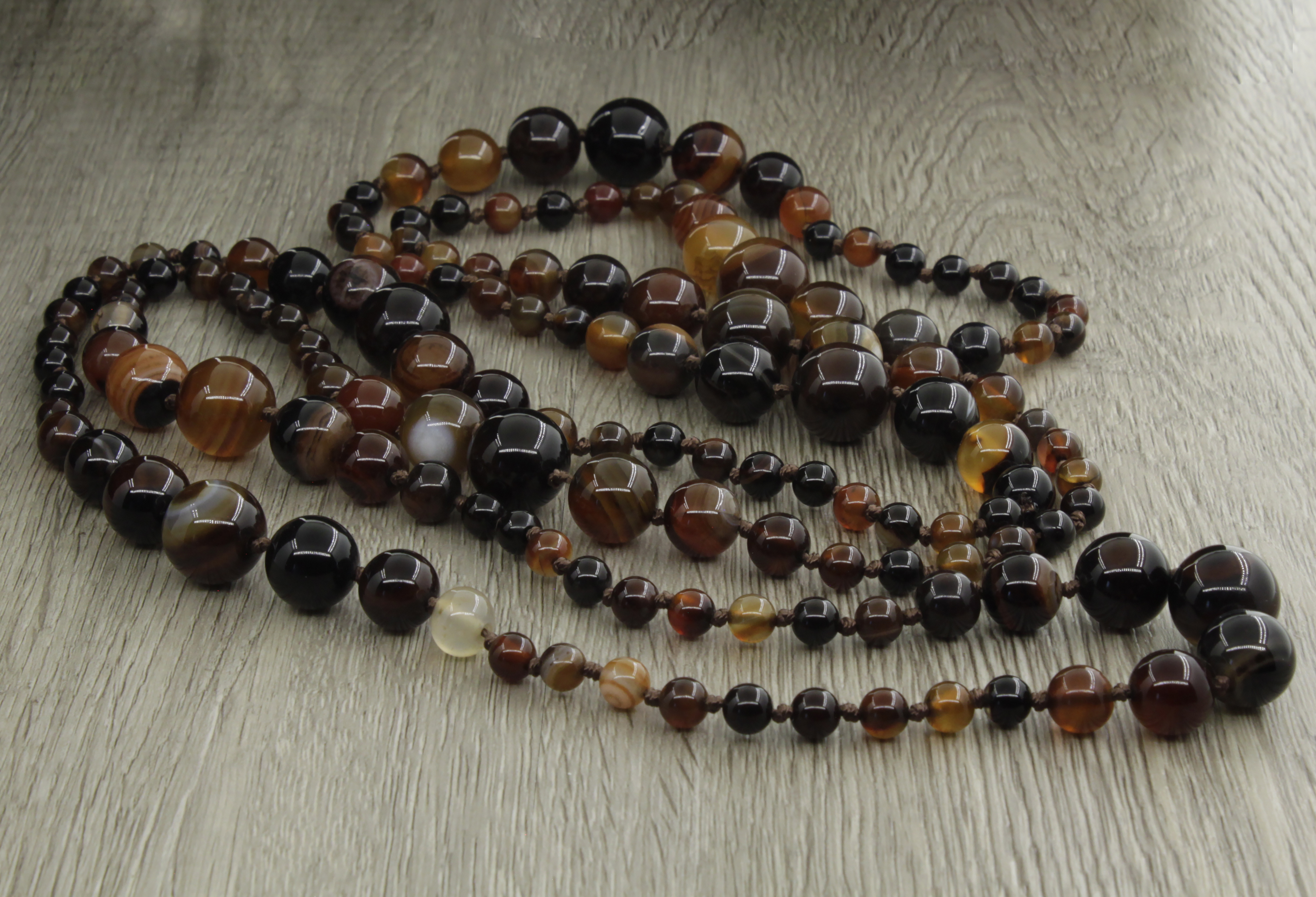 Бусы агат темно-коричневые 6..14мм, бусы "Равновесие", длина бус 130см