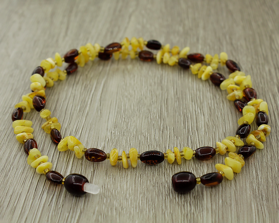 Бусы из натурального янтаря светлого и темного оттенка особенно хорошо подойдут к Вашему праздничному образу. Изготовлены из мелкой гальки и овальных бусин. Застежка раскручивается в две стороны, замаскирована в цвет бус. Средний размер гальки 4x6мм. Длина бус 51см.